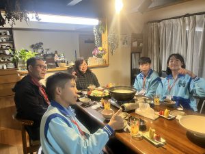受入家庭では、すき焼きやお鍋など温かい料理を囲み、冷えた体をゆっくりと温め、