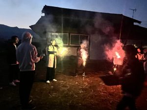 夜には花火も体験🎇冬の澄んだ空気の中でする花火は一段と綺麗で、歓声をあげながら